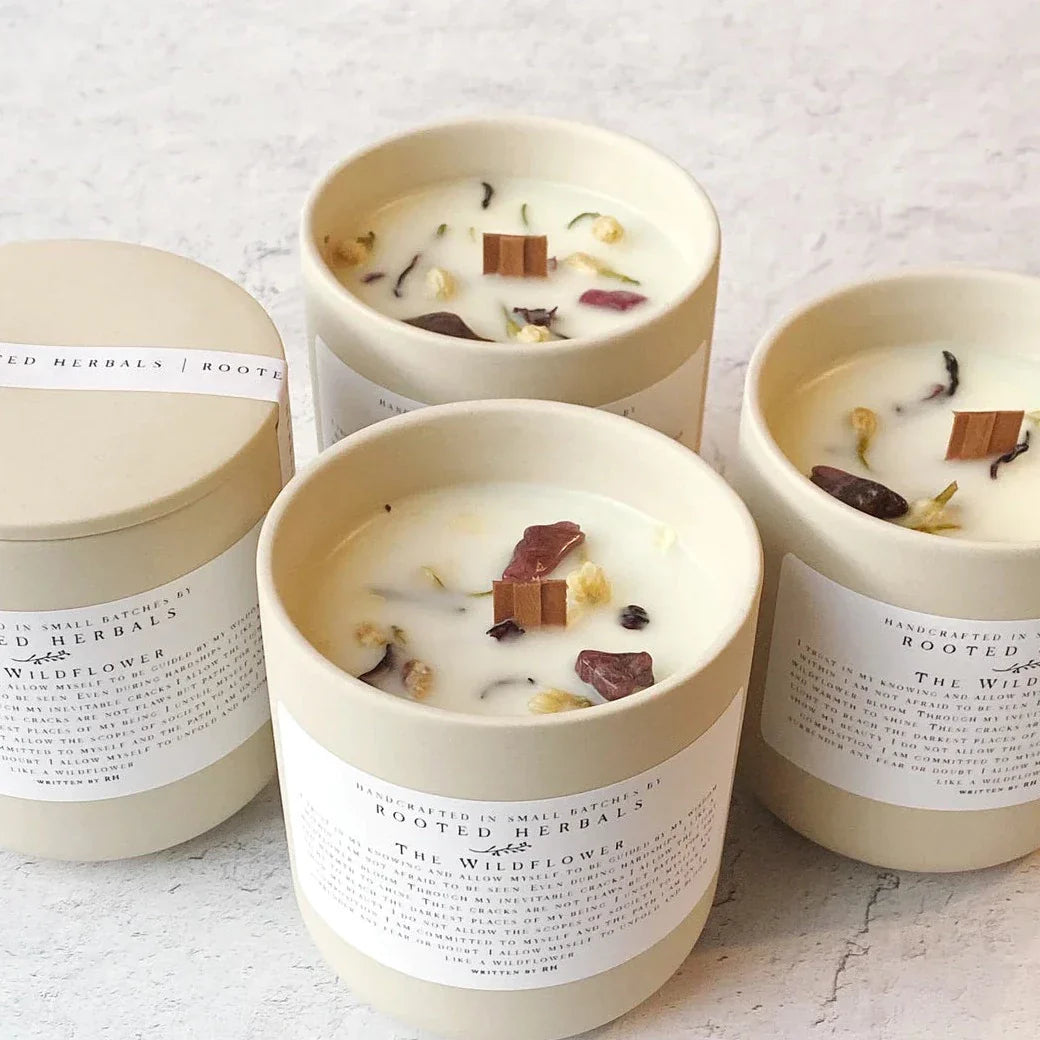 Founder Carly hand-makes each candle with prayer intentions. She is a certified herbalist and energy healer in Reiki. She creates products with loving intentions in small batches to maintain consistency and quality. She states "my heart and soul go into each and every one of them to ensure the highest of vibrations." All candles are natural and made with coconut and soy wax blend, untreated wood wick, essential oils, and fragrances that are phthalate-free and non-toxic. She creates everything from the labels, drawings on each label, and often the quotes on each candle. She takes time to sit with the intention she wants to bring to life and carefully creates the candles based on that intention. The scent of the prayer is added to bring your intention to life as you light the candle in your home.