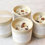 Each candle is made with 100% soy and coconut wax, with an untreated crackling wood wick.