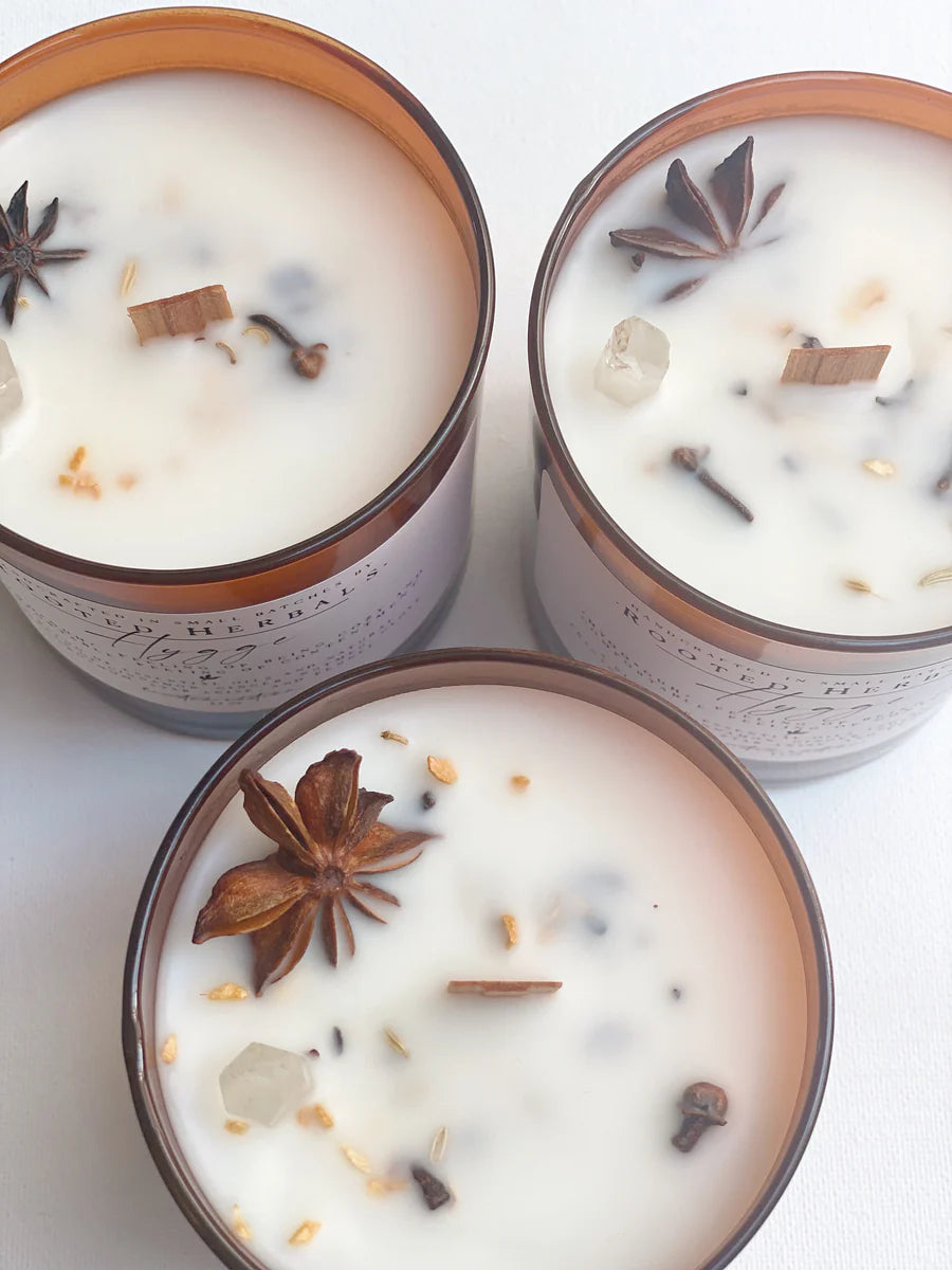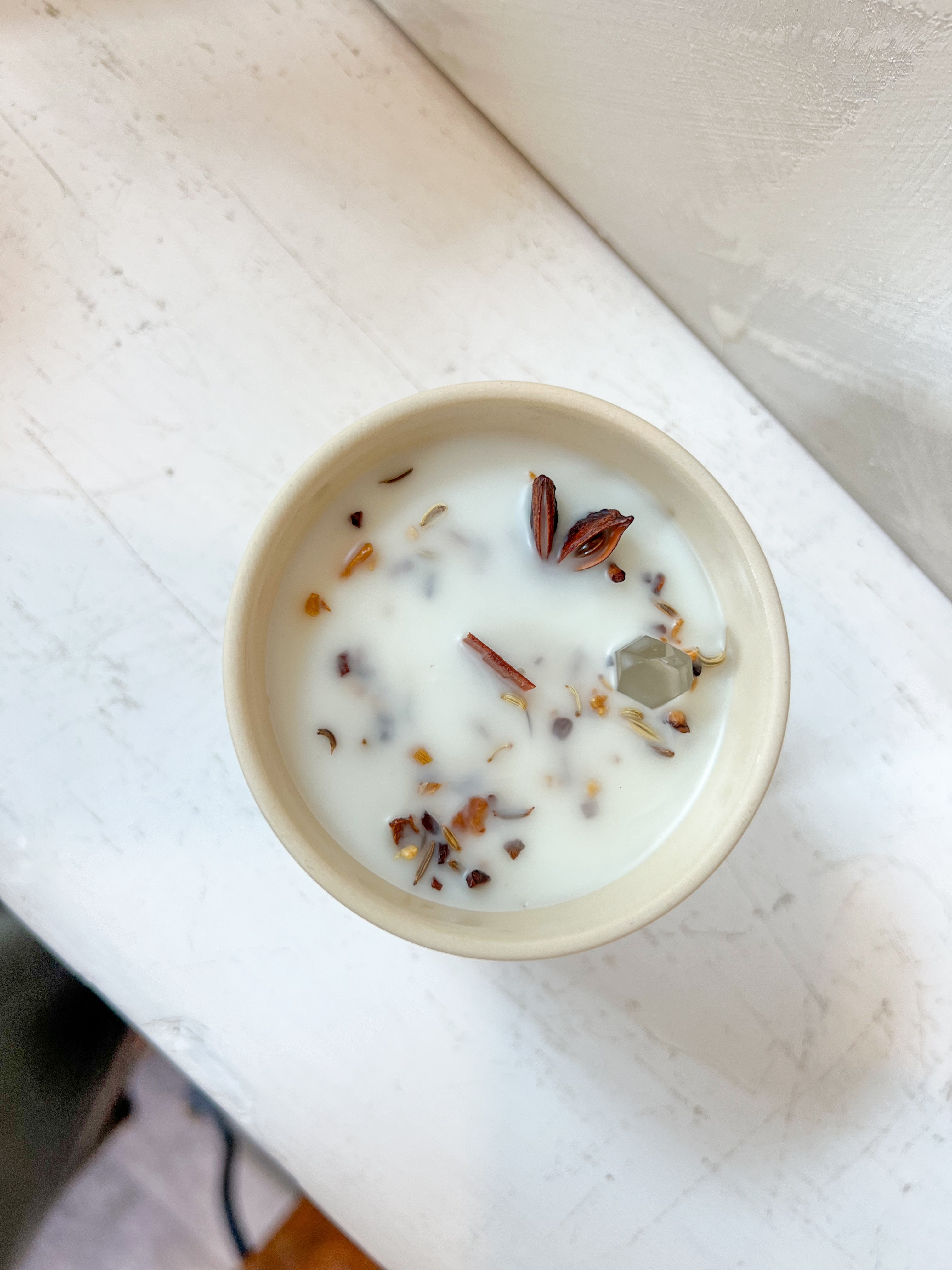 Candles crafted with intentions. Each includes a carefully chosen blend of essential oils, natural fragrances, and crystals.