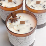 Each candle is made with 100% soy and coconut wax, with an untreated crackling wood wick.