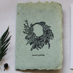 This card is blank inside and comes with a textured, harvest white A2 envelope and a small card matte printed with photos and a little information about our process.