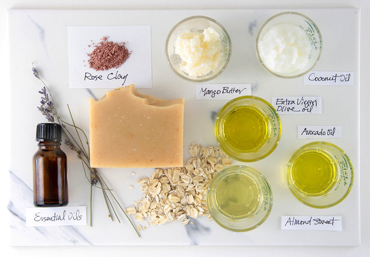 Harmony (Oatmeal) - Premium saponified oils - Coconut Oil, Extra Virgin Olive Oil, Sweet Almond Oil, Avocado Oil, Mango Butter, Distilled Water, Oat, Lemongrass Essential Oil, Lavender Essential Oil, Sea Salt, Rose Clay, and Healing energy.
