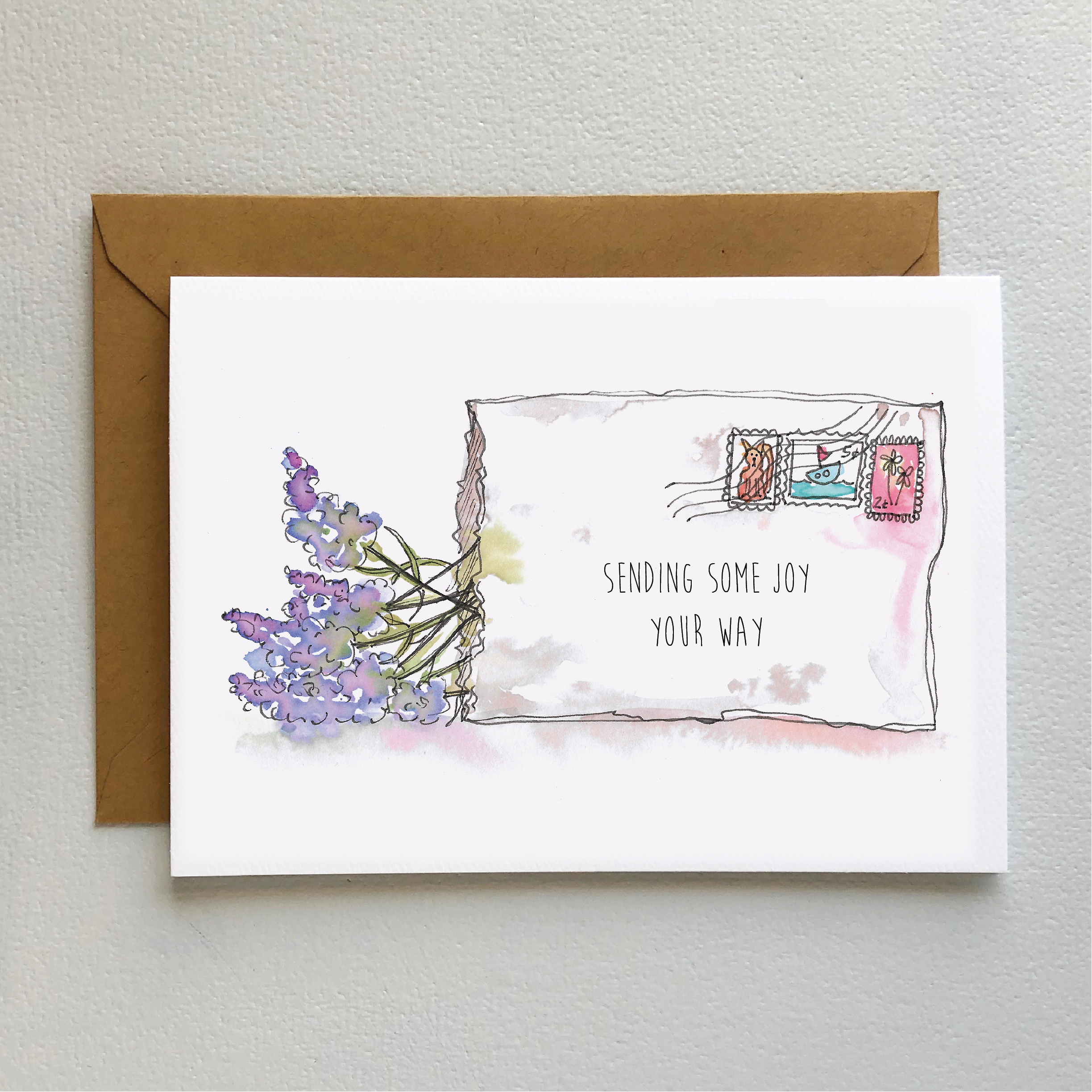 A beautiful watercolor card, printed from original artwork by Jennie Onisk of Oxford Comma Company.