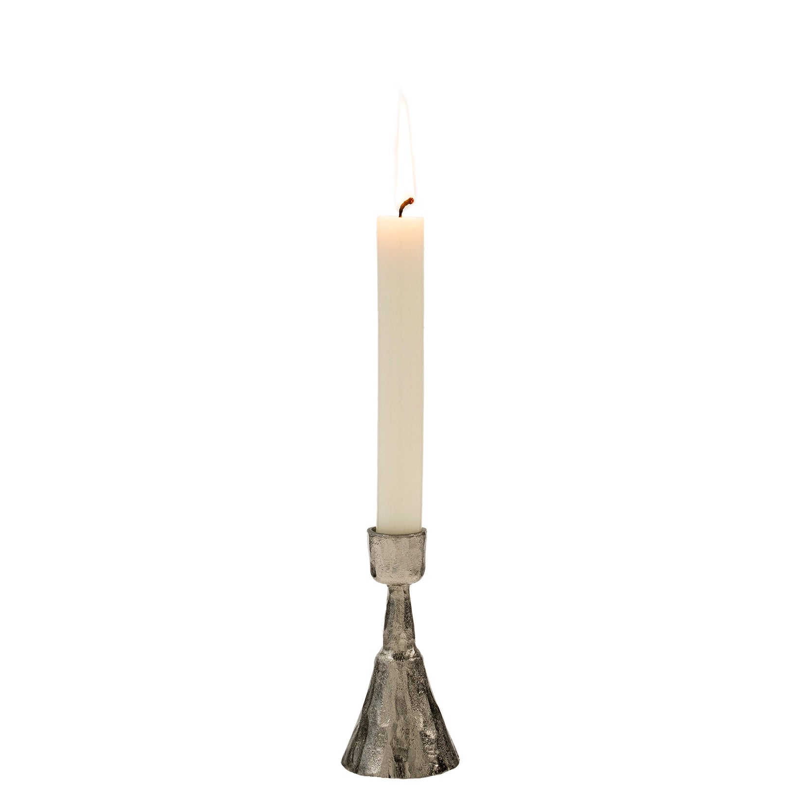 Designed to bring light and luxury, the Zora Forged Candlesticks have an antique silver finish and are faceted, not smooth, simple, and understated. They bring a sense of occasion and celebration to everyday evenings and complete tablescapes and mantels alike.