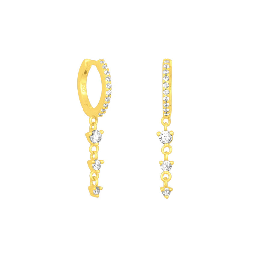 Dangling cubic zirconia chain adds the prettiest movement to these classic pavé huggies. Whether dressed up or down, worn alone or stacked with others, the Sophia huggies are sure to become your go-to.
