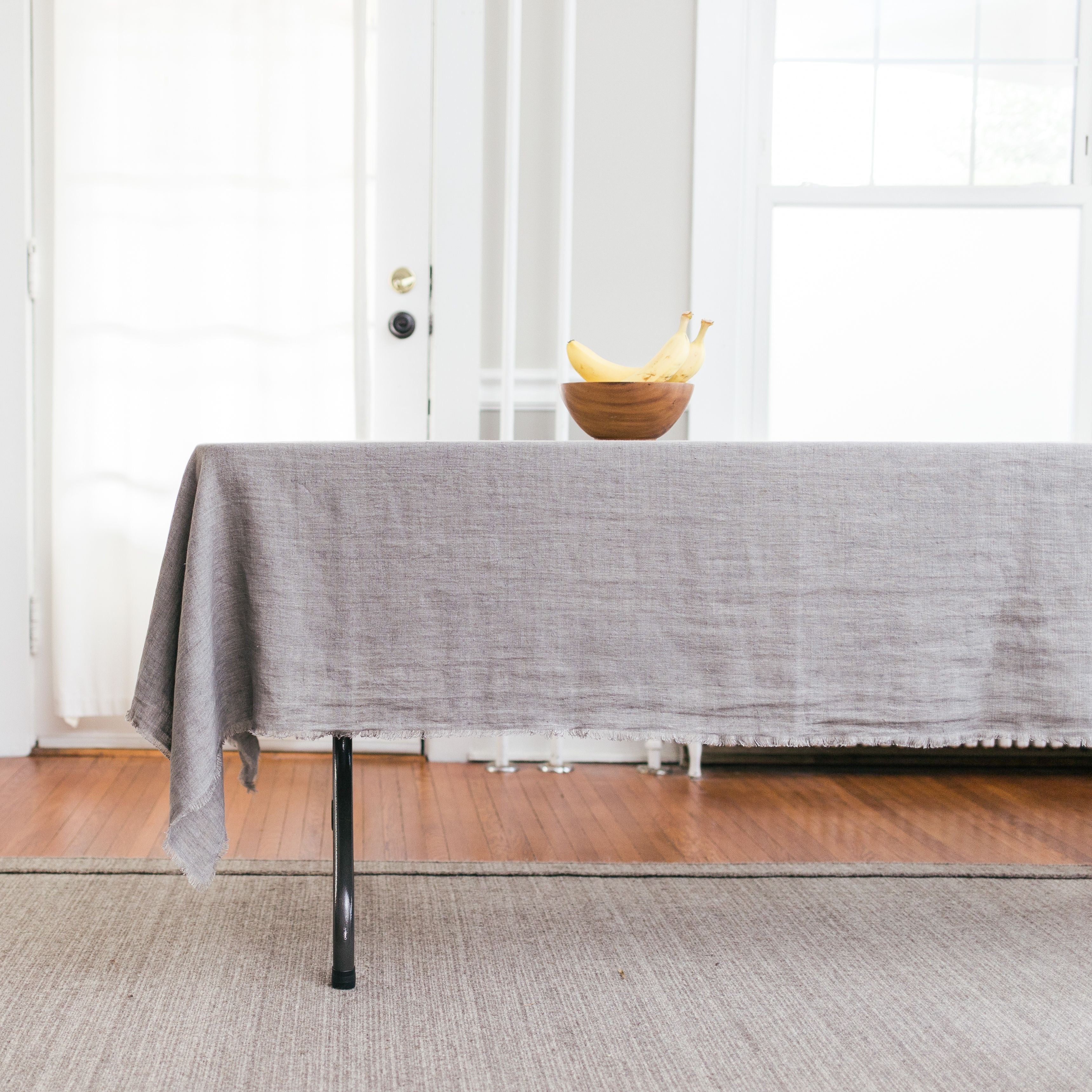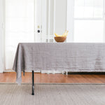 This lightweight linen throw is handmade by Artisans in Southwest India. This effortless and versatile piece is generously sized and doubles as a tablecloth or lightweight throw. Frayed edges add texture to this rich and timeless piece.
