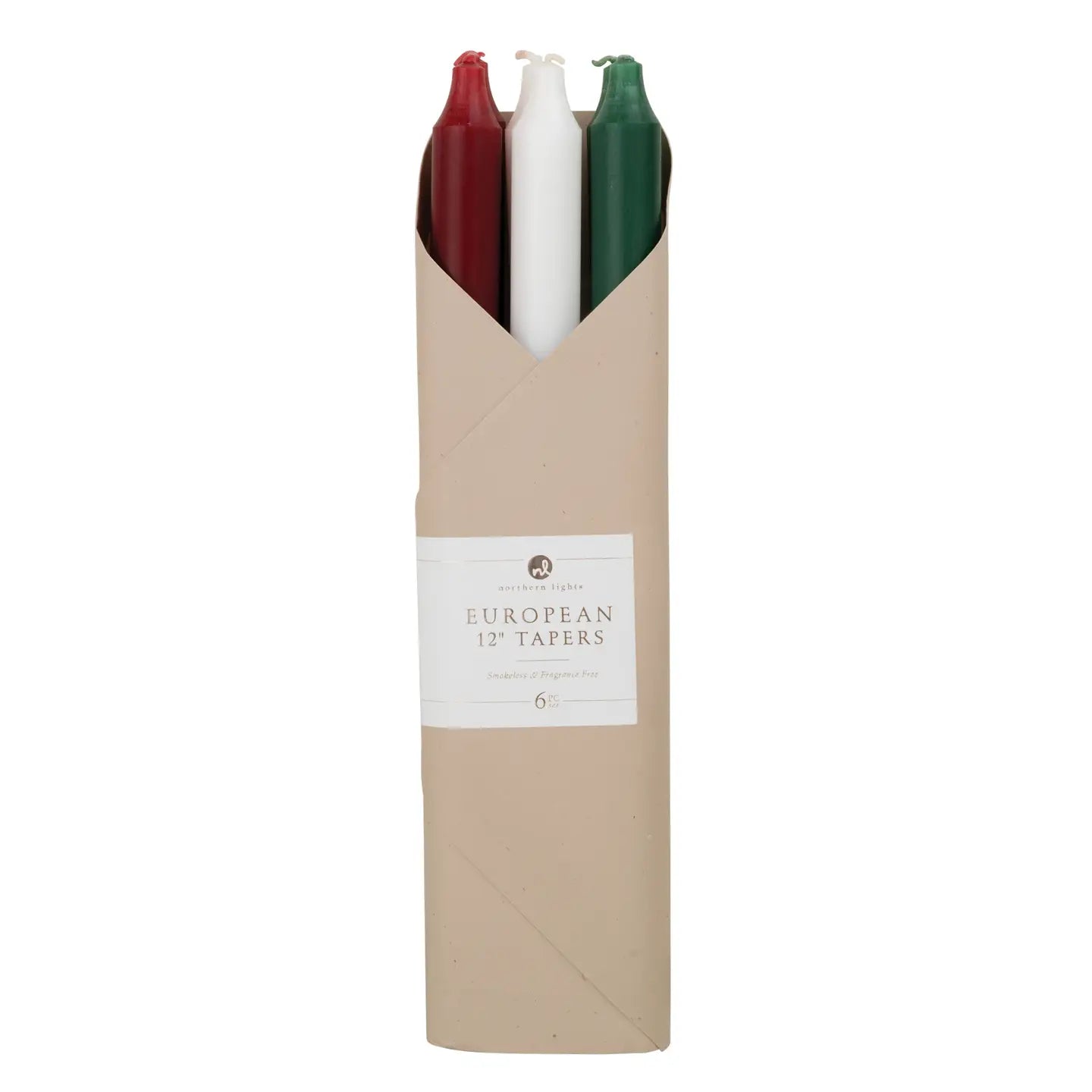 Enjoy an artful combination of taper candle gift sets. Each set includes two candles of three joyful tones, totaling 6 taper candles. These tapers are special, they are smokeless and dripless in a draft-free environment, fragrance-free, and fit standard taper holders. They come in elegant wrapping, perfect for gifting or keeping for yourself!