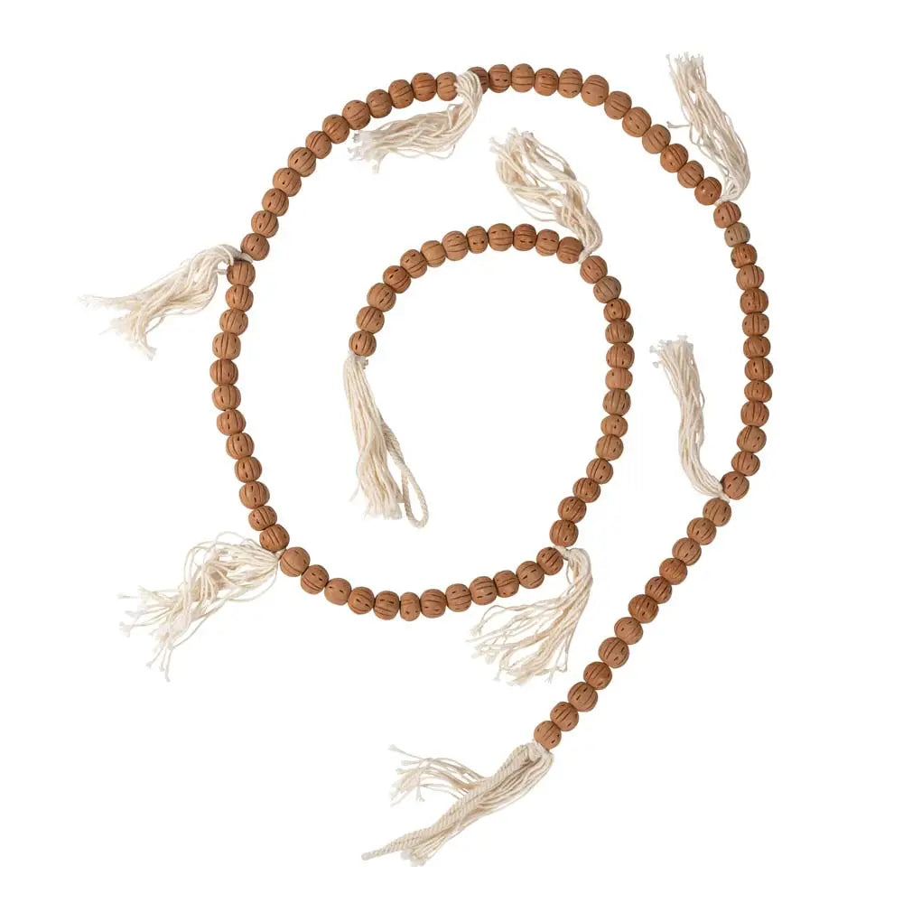 Beaded garlands are a staple of boho decor, but this one is unique. This Tassel Bead Garland is made up of individually handcrafted terracotta beads, each with decorative markings skillfully carved on their surface. The beads are interspersed with natural cotton tassels, creating a classic neutral palette, with unique handcrafted details not found anywhere else.