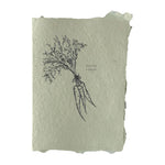 This card is blank inside and comes with a textured, harvest white A2 envelope and a small card matte printed with photos and a little information about our process.