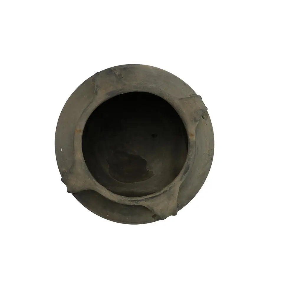 The imperfect façade of the vintage terra cotta Chinese Water Pot with Handles adds to the allure of these decorative pots. Each pot has four small looped handles that would have been used for carrying by hand or by rope. For decorative use today, the Chinese Water Pot with Handles make a bold accent.