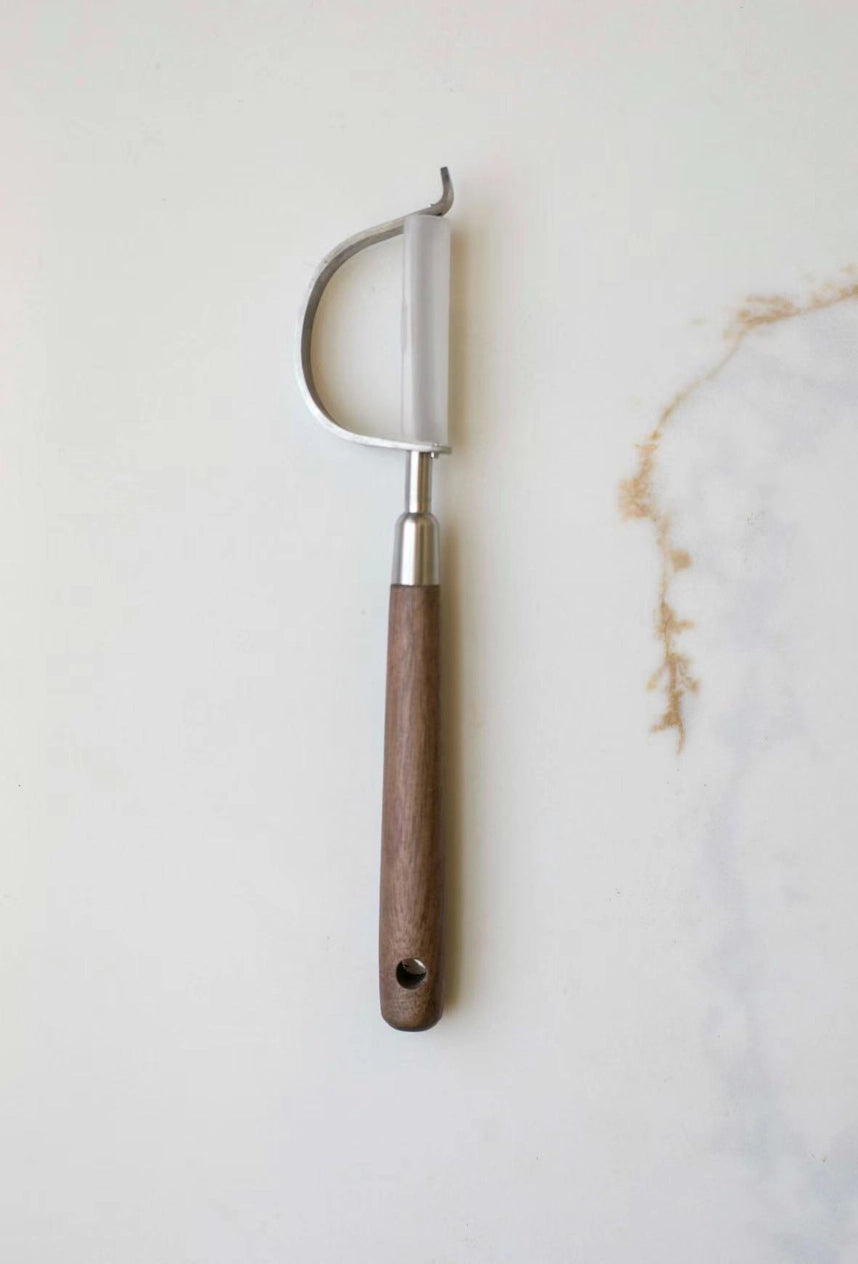 This peeler is equipped with a sharp stainless - steel blade, enabling efficient peeling of various fruits and vegetables. The wooden handle offers a comfortable grip, simplifying the peeling process.