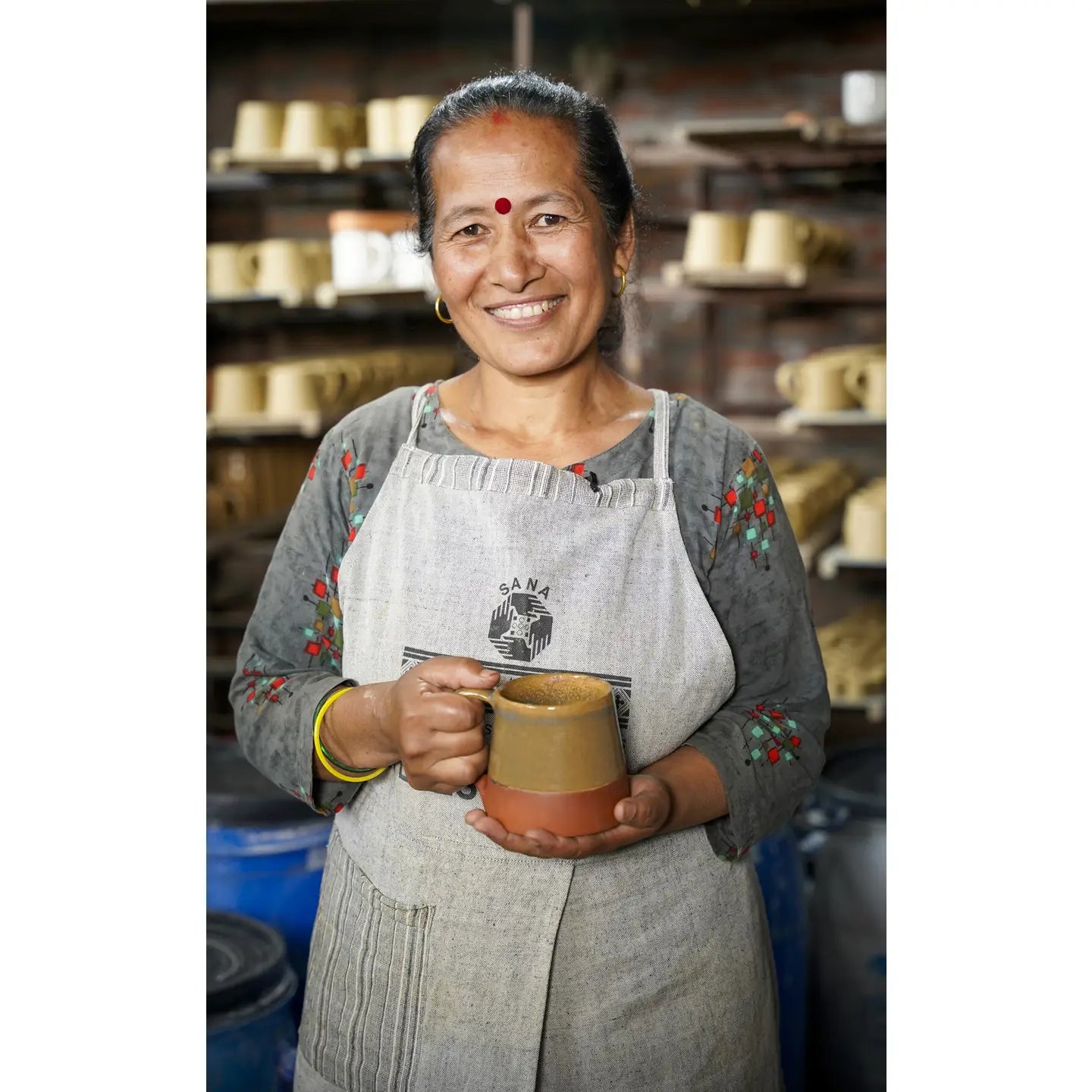 The Terracotta Mug will be your go-to for a morning cuppa, a nighttime tea, a moment alone curled up with a book or at the table sharing a drink, catching up with friends. Handcrafted in Nepal, these mugs are shaped, glazed, and fired by artisans with Sana Hastakala. Beautifully designed with a lovely feel, the top half in earthy brown tones, a subtle drip in blue glaze with a natural terracotta unglazed bottom.