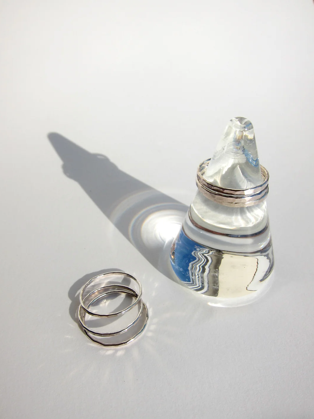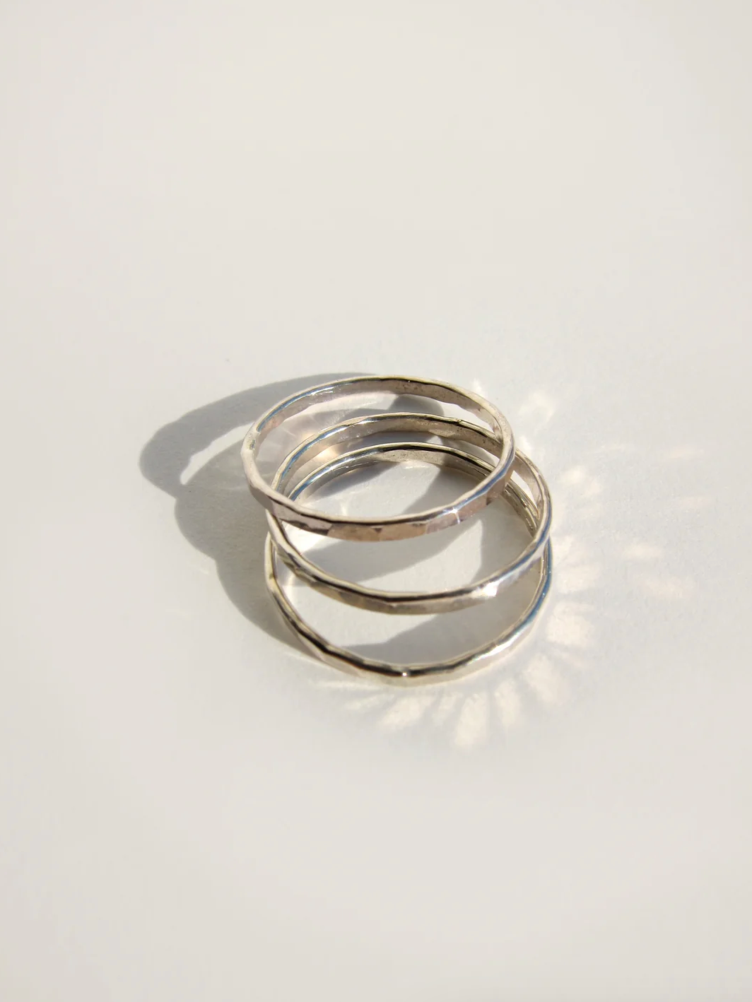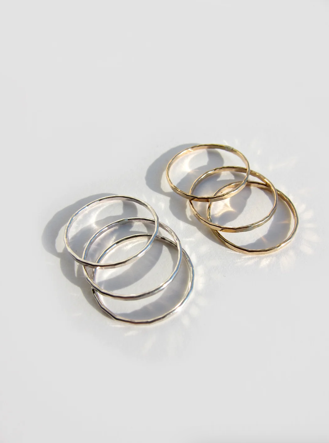 Starting from a coil of wire, these pretty stackers are soldered, polished and hammered to 1mm thick. Textured to create facets that shimmer in the light. This listing is for 1 hammered ring made from wispy wire for a delicate, minimalist look.